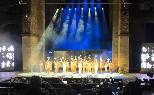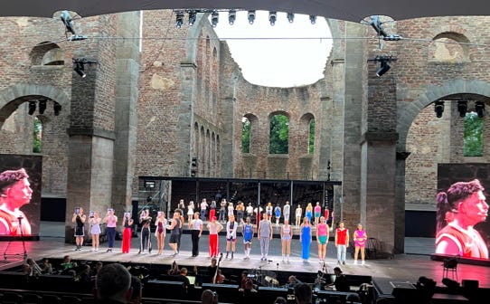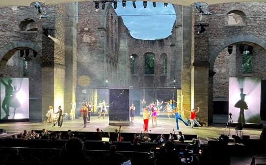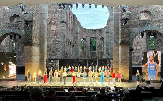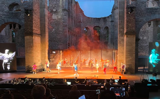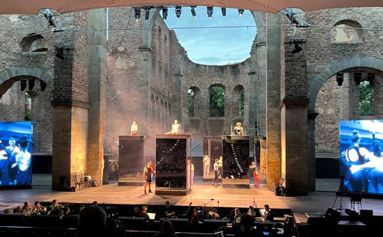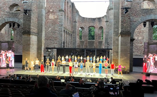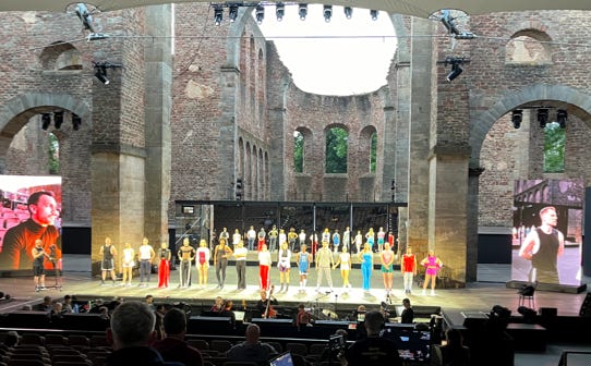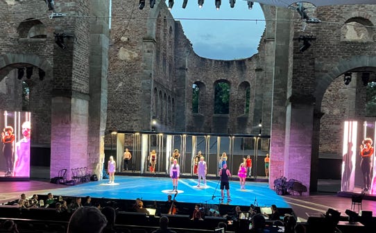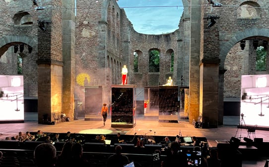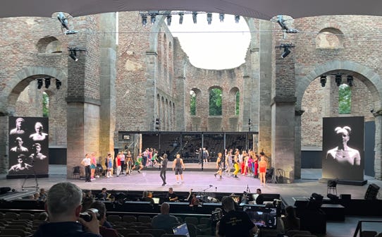 Choreographer and Director Melissa King brings this classic American musical to the stage in one of the first productions to be translated into German. Due to the immense size of the theater, an actual cathedral ruin, a concept of placing LED walls on either side of the stage was developed using live camera and pre-produced footage to magnify and maintain the intimate nature of the piece..