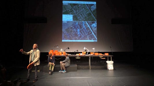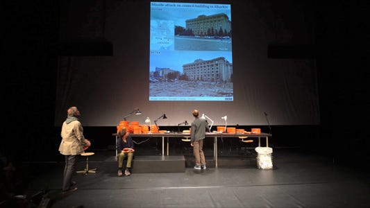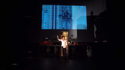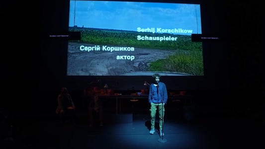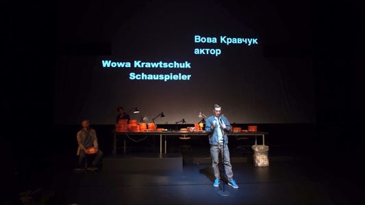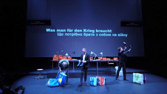 Since Russia’s invasion of Ukraine, millions of Ukrainian citizens have fled their homes. Some of them are displaced inside the country itself, some have left in order to seek shelter abroad. Others have stayed, and some have returned in order to take up arms to fight against the Russian army. Among these fighters are also many theatre artists. In a project that brings together two actors from Kyiv and an actor from the Schaubühne, Stas Zhyrkov, artistic director of the Left Bank Theatre, Kyiv, and Pavlo Arie, dramaturg and writer, explore the cost of war for an artist. What does it do to your body and your mind to handle a weapon? What does it mean to take up a rifle or a gun, objects designed to inflict damage and to de- stroy – especially if one’s own life has been focused on imagining and creating fictional worlds?